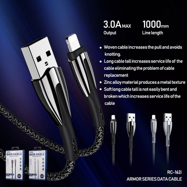 REMAX RC-162i Armor Series 3A USB-auf-8-Pin-Ladekabel, Kabellänge: 1 m