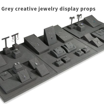 Erhöhtes Brett, graues Schmuckdisplay, Mikrofaser-Schmuck-Requisiten-Display-Rack