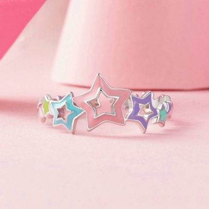 S925 Sterling Silber Dopaminfarbener Stern offener verstellbarer Ring