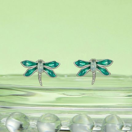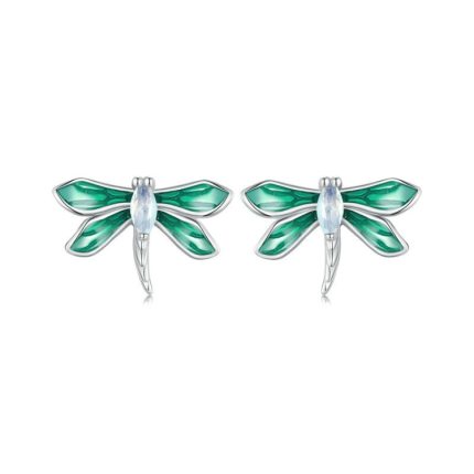 S925 Sterling Silber platinierte Tier-Libellen-Ohrringe
