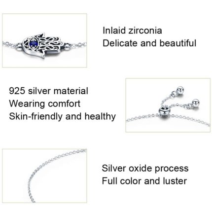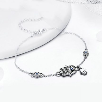 Valentinstagsgeschenk, Hamsa-Hand-Kristall-eingelegtes Handkettenarmband, Kettenlänge: 25 cm