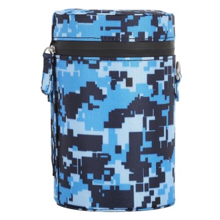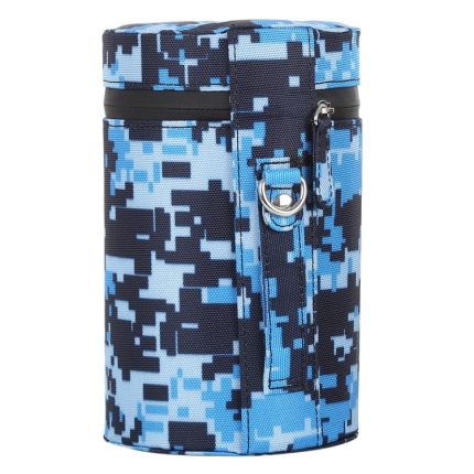 Großes Objektivetui in Tarnfarbe mit Reißverschluss und Stoffbeutel für DSLR-Kameraobjektive, Größe: 16 x 10 x 10 cm