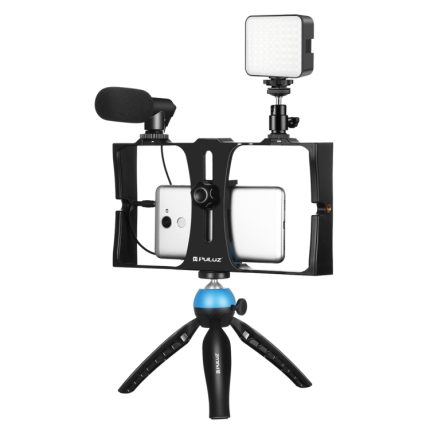 PULUZ 4-in-1-Vlogging-Live-Übertragung, LED-Selfie-Licht, Smartphone-Video-Rig-Kits mit Mikrofon + Stativhalterung + Kaltschuh-Stativkopf für iPhone, Galaxy, Huawei, Xiaomi, HTC, LG, Google und andere Smartphones, 4-in-1(Blue), 4 in 1, 4-in-1(US)…