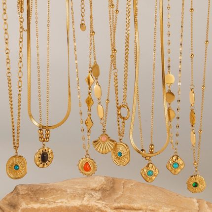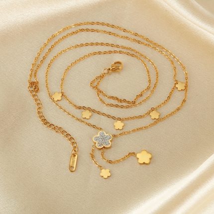 Einfache Vintage-Halskette aus Edelstahl mit doppellagigem gestapeltem Quasten-Blumenanhänger