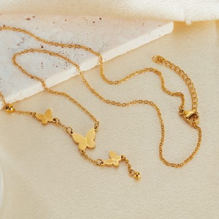OPK GX2440 Schmetterling Quaste Halskette Edelstahl Kette