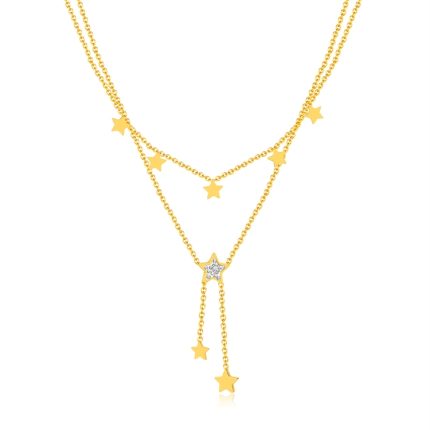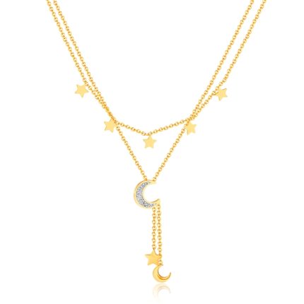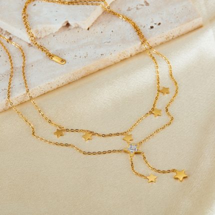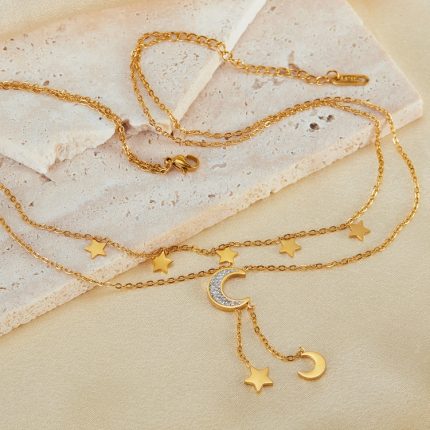 OPK GX2437 Edelstahl Stern Mond Quaste Anhänger Doppel Schichten Gestapelt Schlüsselbein Kette