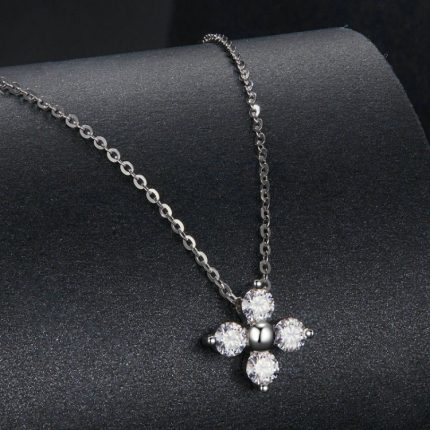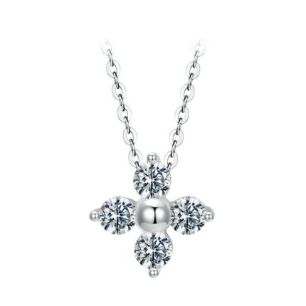 S925 Sterling Silber plattiert mit Platin Glücksklee-Halskette mit Moissanit