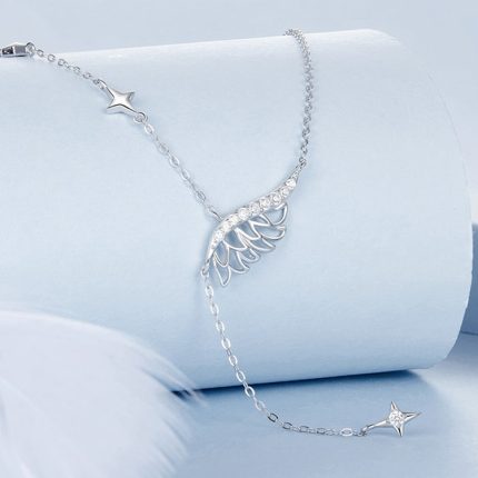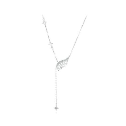 S925 Sterling Silber Platinierte Flügelfeder Schlüsselbein Halskette