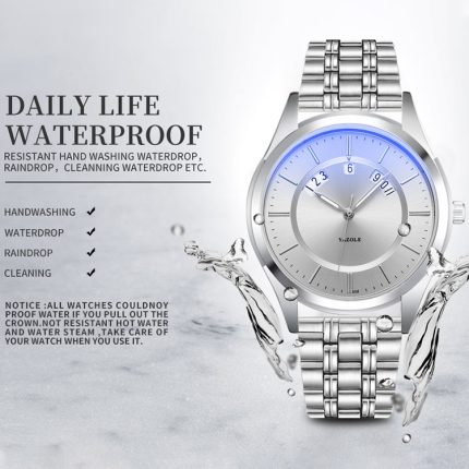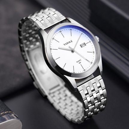 YAZOLE 513 Stahlband Kalender wasserdichte Quarzuhr