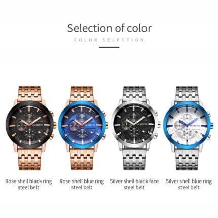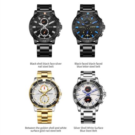 Modische, multifunktionale Quarz-Herrenuhr mit Stahlarmband