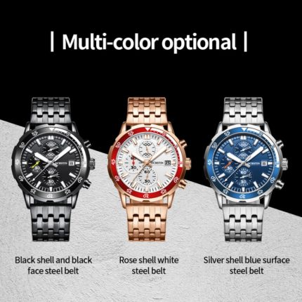 Multifunktionale Quarz-Herrenuhr mit wasserdichtem Stahlarmband