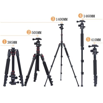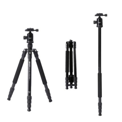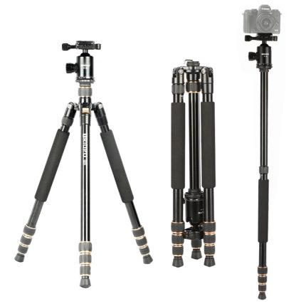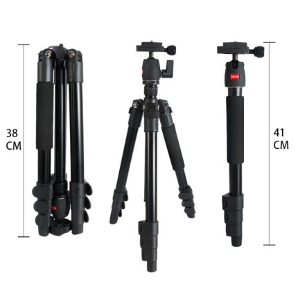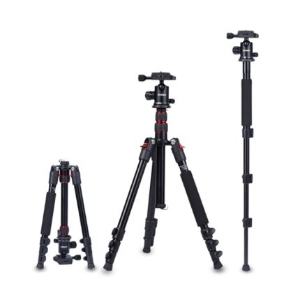 TRIOPO K2508S+B1S Verstellbares tragbares Stativ aus Aluminiumlegierung mit Kugelkopf für Spiegelreflexkameras, K2508S+B1S (Black), K2508S+B1S (Gold), K2508S+B1S (Red)