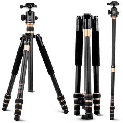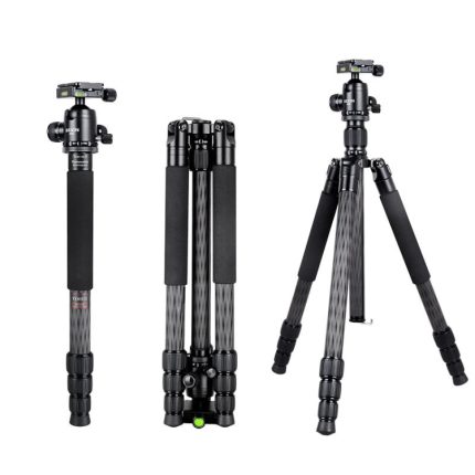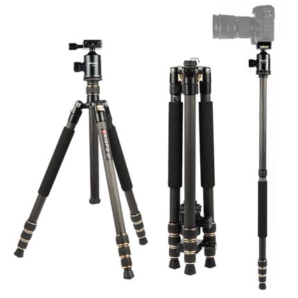 QingZhuangShiDai Q666C Tragbares Reisefotografie-Kugelkopf-Spiegelreflexkamera-Stativ aus Kohlefaser, Q666C(Black)