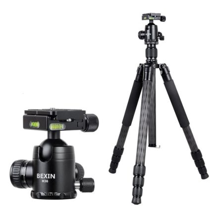 Tragbares Klappstativ aus Kohlefaser für Spiegelreflexkameras, kardanische Fotografie-Halterung mit niedrigem Schwerpunkt, BEXIN RC254, BEXIN RC254+LH-28