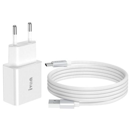 Tragbares Dual-USB-Reiseladegerät + 1 Meter USB-auf-Typ-C-Datenkabel, EU-Stecker