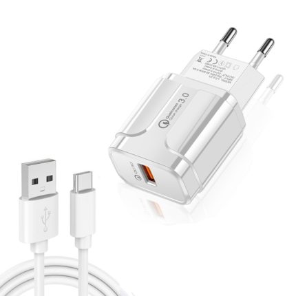36-W-Dual-Port-QC3.0-USB-Ladegerät mit 3-A-USB-zu-Typ-C-Datenkabel, EU-Stecker, EU Plug + USB to Type-C Cable