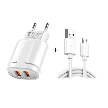 36-W-Dual-Port-QC3.0-USB-Ladegerät mit 3-A-USB-auf-Micro-USB-Datenkabel, EU-Stecker, EU Plug + USB to Micro USB Cable