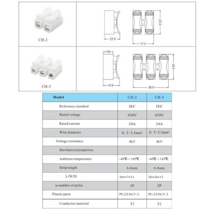 100 Stück selbstsichernde Steckklemmen für Deckenleuchten, CH-2, CH-3