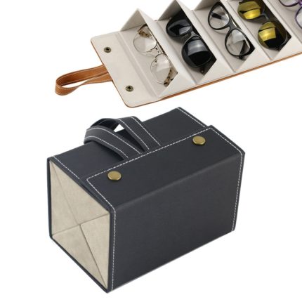 Multifunktionale Schmuck-Brillen-Aufbewahrungsbox, handgefertigtes Brillenetui aus PU-Leder mit kleiner Körnung, Modell: