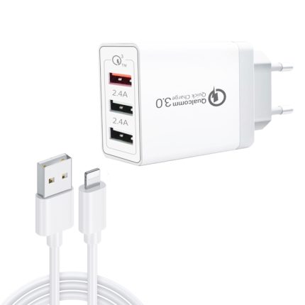 IVON AD-35 2-in-1 18 W QC3.0 USB-Port-Reiseladegerät + 1 m USB-auf-8-Pin-Datenkabel-Set,