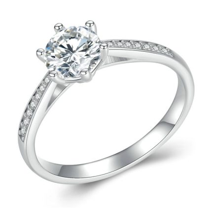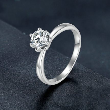 MSR006 Sterling Silber S925 Moissanit Ring mit sechs Krallen, weiß vergoldeter Schmuck