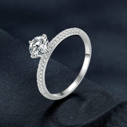Ring aus Sterlingsilber, S925, vier Krallen, Moissanit, weißvergoldet, Schmuck