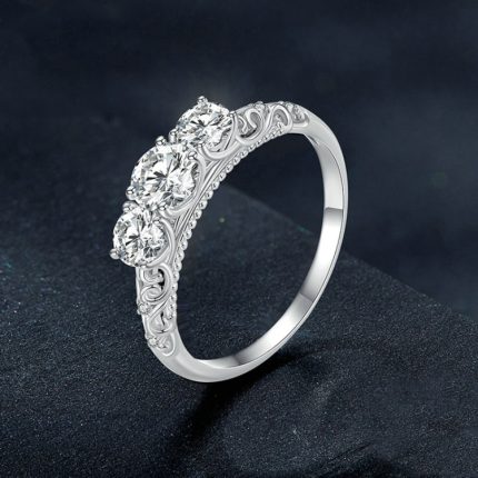 MSR008 Funkelnder Moissanit-Ring aus Sterlingsilber S925 mit Zirkonia und Weißgold plattierter Schmuck