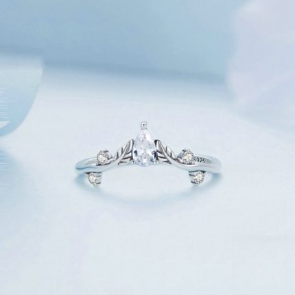 Tropfenförmiger Rankenring aus Sterlingsilber S925 mit Zirkonia-Zweigblatt-Schmuck