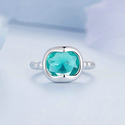 Ring aus synthetischem Paraiba-Sterlingsilber, S925-Silber, weißvergoldet