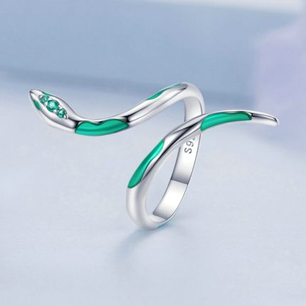 Grüner Schlangenring aus Sterlingsilber mit S925-Weißgoldbeschichtung und Öltropfen-Zirkonia