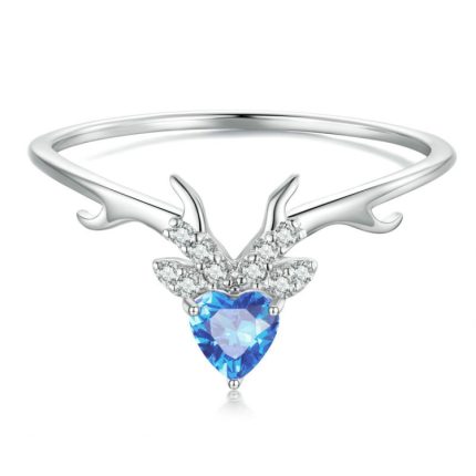 Ring aus Sterlingsilber mit S925-Weißgoldbeschichtung und blauem Herz-Hirsch-Zirkonia-Ring