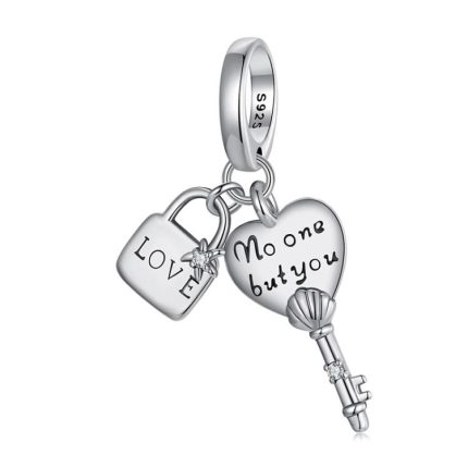 S925 Sterling Silver Oxidized Love Heart Lock Pendant DIY Beads