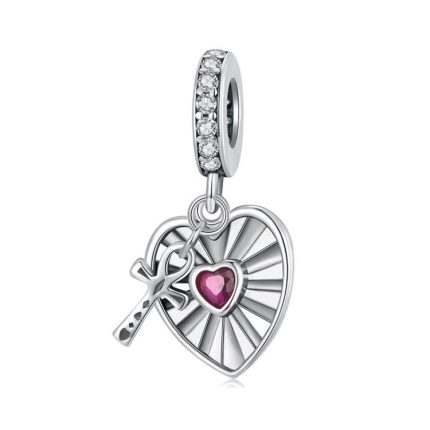 S925 Sterling Silver Heart Cross Hollow Pendant Bracelet Beads