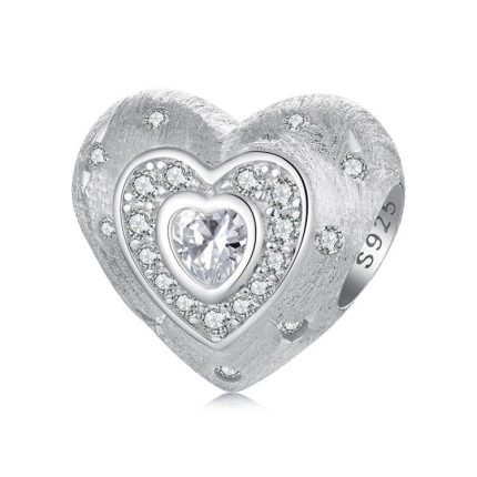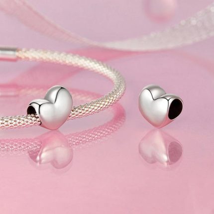 S925 Sterling Silver Platinum-Plated Shining Heart Beads