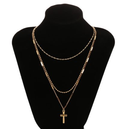 Handgefertigte Halskette mit Kreuzanhänger mit mehreren Ketten für Damen