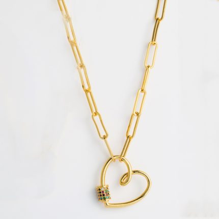 Liebesherz-Anhänger-Halskette mit mikroeingelegtem farbigem Zirkon
