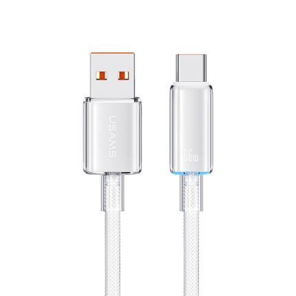 USAMS USB zu Typ-C 6A Aluminiumlegierung klares LED-Schnellladedatenkabel, Länge: 1,2 m
