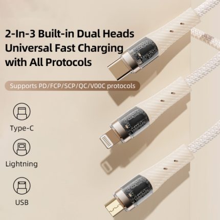 ROCK G20 Two to Three 5A USB+Typ-C auf 8 Pin+Typ-C+Micro-USB-Schnellladedatenkabel, Länge: 1,5 m