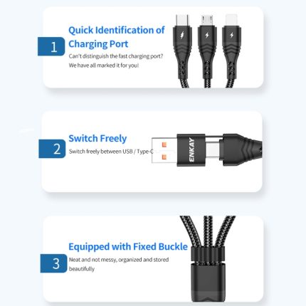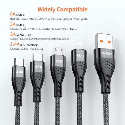 ENKAY 4-in-1 6A USB-A auf Typ-C / 8 Pin / Micro USB Multifunktions-Schnellladekabel