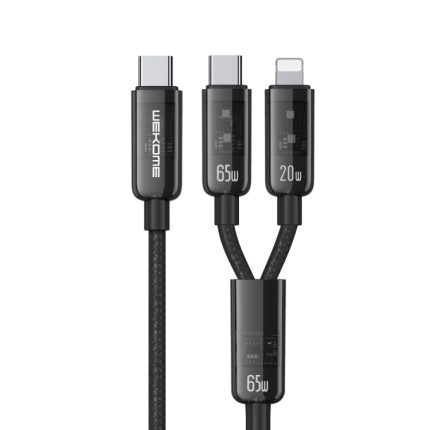 WK WDC-194 Pioneer Series 2-in-1 65 W USB-C/Typ-C auf USB-C/Typ-C+8-poliges Schnelllade-Datenkabel, Länge: 1 m