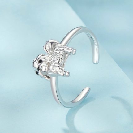 S925 Sterling Silber Platinierter süßer Shih Tzu offener Ring verstellbarer Tierschmuckring