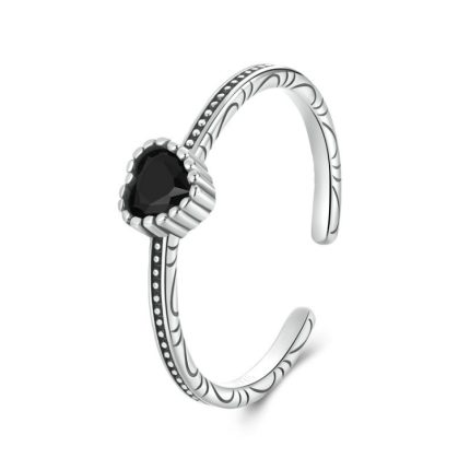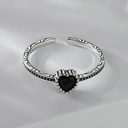 S925 Sterling Silber Oxidierter Herz der Nacht Offener Ring Verstellbarer herzförmiger Ring