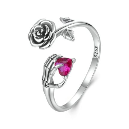 S925 Sterling Silber Rose Totenkopf Hand offener Ring verstellbarer Ring