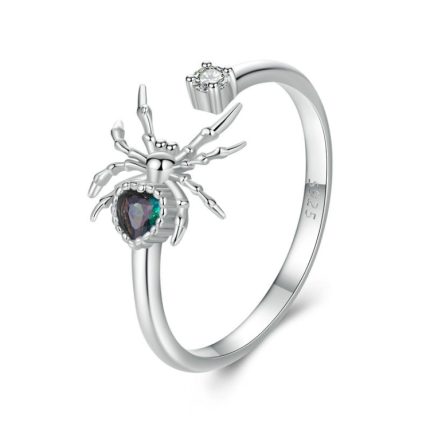 S925 Sterling Silber Platinierter Spinnen verstellbarer offener Ring