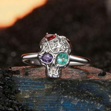 S925 Sterling Silber Platinierter verstellbarer offener Totenkopfring