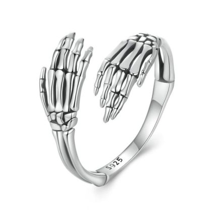 S925 Sterling Silber Oxidierter Skeletthand verstellbarer offener Ring