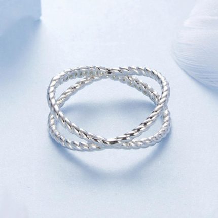 BSR621 S925 Sterling Silber Platinierter glänzender Zirkon Doppelschichtiger X-förmiger Ring