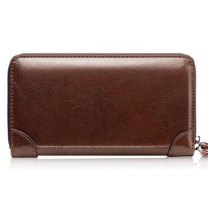 Damen-Geldbörse aus Leder mit mehreren Kartenfächern, Retro-Geldbörse aus Ölwachs-Leder, lange RFID-Anti-Diebstahl-Bürstenkupplung