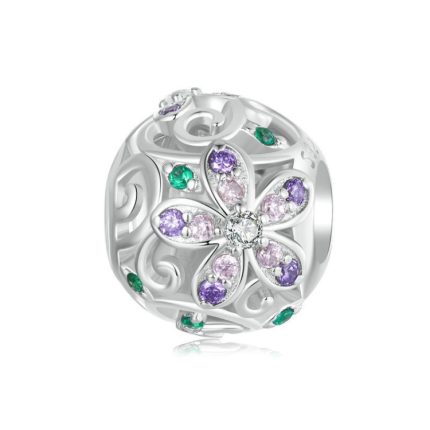 S925 Sterling Silber platiniert Zirkon Kugel Blume DIY Perlen