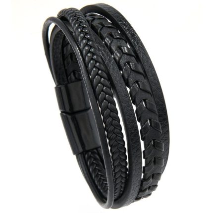 Stylish Minimalist Handmade Braided Leather Bracelet for Men with Magnetic Clasp Closure